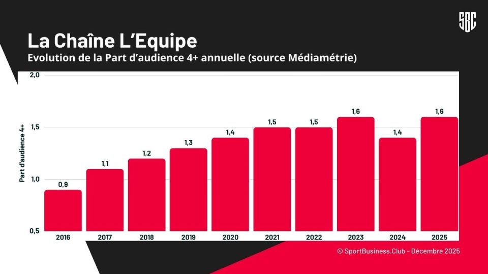 Sur l’ensemble de l’année, La Chaîne L’Équipe revendique en moyenne 33,8 millions de téléspectateurs uniques mensuels. Le mois de février a marqué un pic historique avec une part d’audience mensuelle de 2,2%, portée notamment par le biathlon. « La Chaîne L’Équipe est devenue une chaîne de réflexe, reconnue pour ses analyses et sa liberté de ton,» souligne Vincent Broussard, directeur général du pôle TV du groupe Amaury. Le dirigeant se félicite de ces résultats, tout en évitant de se projeter sur l’exercice suivant.