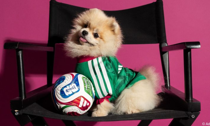 A l'approche de la Coupe du Monde de football, la marque allemande adopte une approche décalée avec une collection dédiée aux animaux de compagnie.