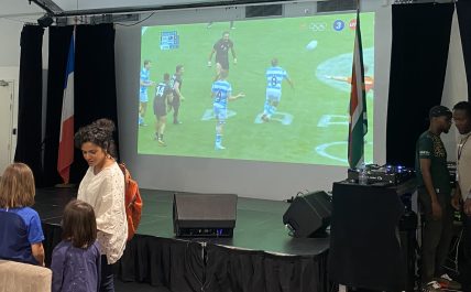 Sports 27/07/2024 Paris 2024. Les supporters Français à la Maison d’Afrique du Sud pour suivre le rugby
