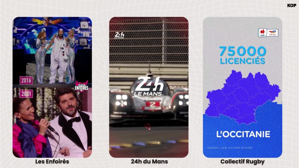 Face à la fragmentation des audiences et à la saturation des messages, Kop a structuré sa proposition créative dans l’univers du sport autour de cinq piliers. Le premier repose sur le storytelling. L’agence conçoit des récits éditoriaux capables de donner du sens aux prises de parole des marques sportives. Pour les 24 Heures du Mans, l’agence a privilégié des formats patrimoniaux et RSE, générant 1,4 million de vues. Cette logique narrative s’est retrouvée dans la collaboration menée avec Sportfive autour du média Collectif Rugby, qui a atteint 2,2 millions de vues sur TikTok avec un taux d’engagement supérieur de 25 % aux standards du secteur.