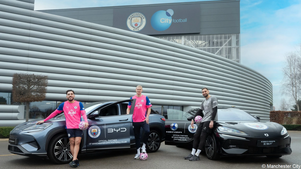 Sponsoring. Byd devient partenaire officiel de Manchester City. Le constructeur automobile chinois s’associe aux équipes professionnelles masculines et féminines du club de football anglais indique un communiqué publié le 11 février 2026. Le logo de Byd figurera sur la pochette du kit d’entraînement de l’équipe première masculine et, à partir de la saison 2026/2027, de l’équipe féminine. Il sera également présent sur la panneautique LED de l’Etihad Stadium.
