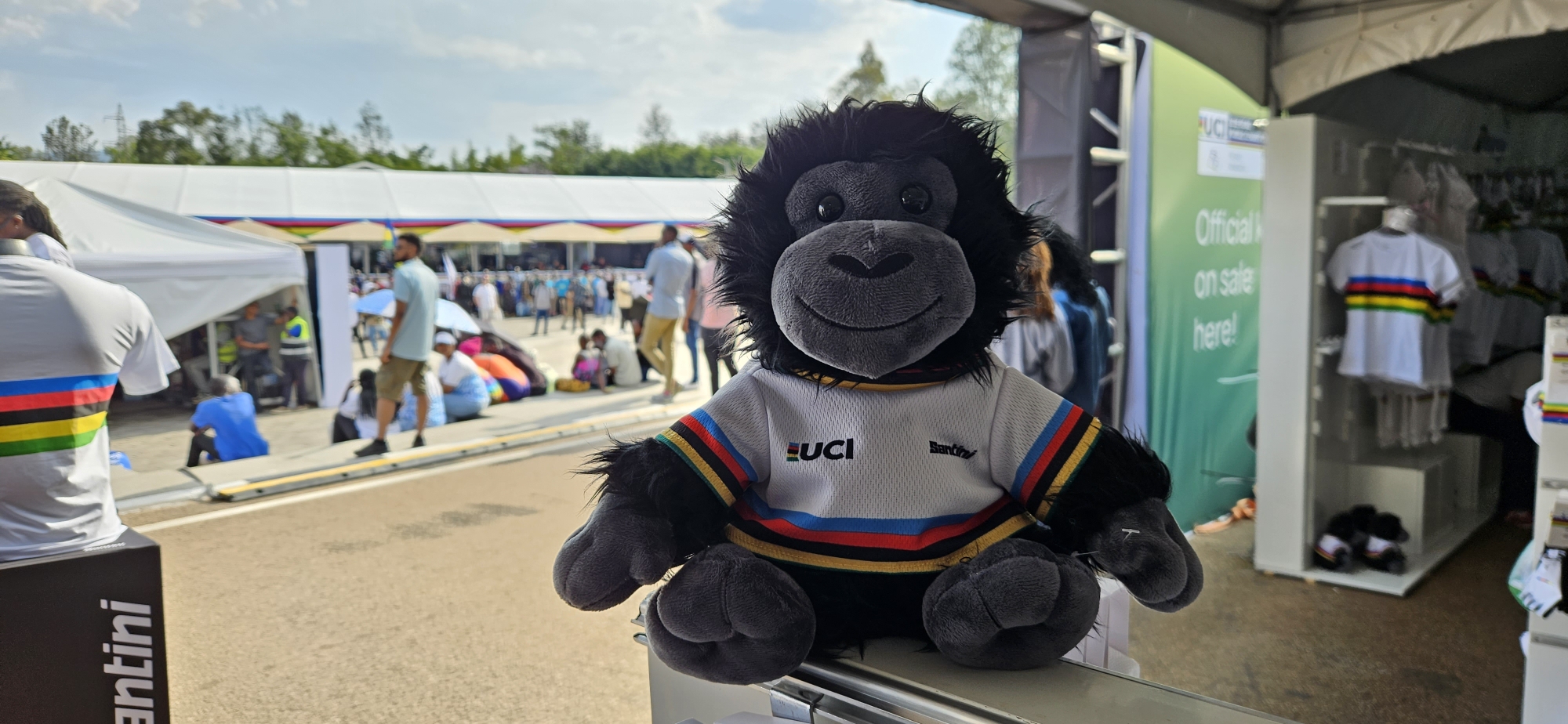 Pour garder un souvenir de cette rencontre, intense et mémorable, avec Ganza, les spectateurs multiplient les selfies et les vidéos. Mais le gentil gorille est aussi disponible en peluche officielle. Dans la fan-zone, la mascotte est ainsi vendue dans la boutique Santini à 47 850 francs rwandais, soit 28 euros. Un tarif jugé trop élevé. « Le Rwandais moyen ne pourra jamais se l’acheter,» nous a-t-on fait remarquer. Tadej Pogačar s’en offrira sans doute une. Grand favori pour le titre mondial, le coureur slovène a un point commun avec Ganza : son nom signifie “dominer” en kinyarwanda,