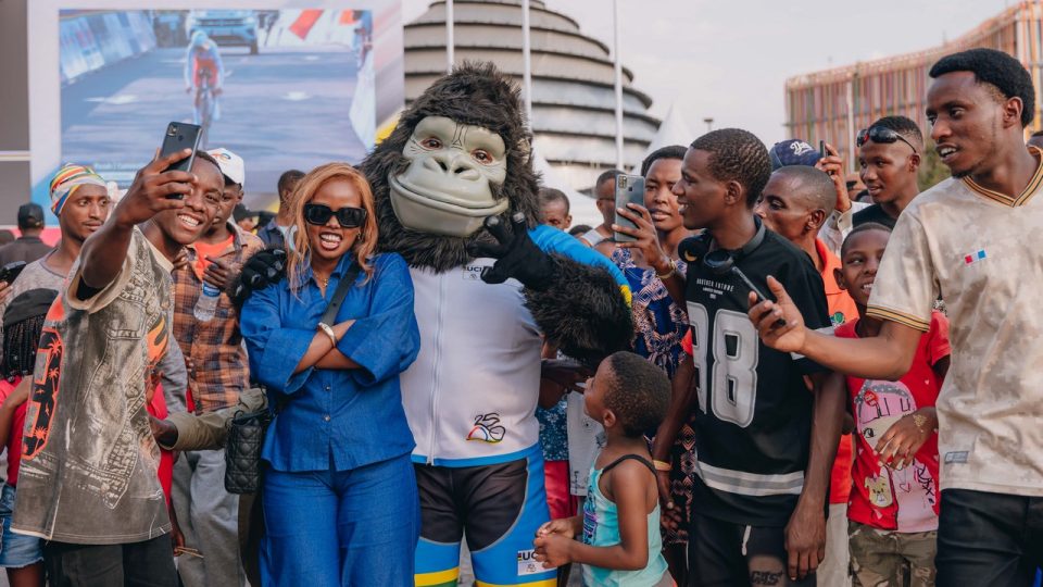 Fan expérience. Oubliez Tadej Pogačar ! Au Rwanda, où se tiennent les championnats du monde de cyclisme sur route 2025, la vraie star c’est Ganza. Il n’a ni vélo, ni casque, mais possède un sacré déhanché… et c’est un gorille. A Kigali, la capitale du pays, en fin d’après-midi, à l’heure où le soleil se couche sur la capitale, la mascotte officielle de l’événement, elle, met le feu à la fan zone. Le site, installée le long de la ligne d’arrivée de la compétition qui se tient du 22 au 28 septembre, est le rendez-vous de dizaines d’enfants. Surexcités, ils coursent, dansent, et tombent les bras de Ganza. Qui n’attend que cela.