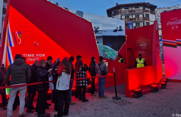 Très présent sur ces Jeux, Coca-Cola avait aussi déployé un dispositif similaire, mais plus petit, en montagne, à Cortina (photos) et à Livigno. La marque de soda, qui partage son partenariat olympique avec l’entreprise laitière chinoise Mengniu, était également très visible à Milan avec des supports commerciaux plus classiques, comme l’habillage d’un des fameux vieux tramways de la cité italienne.