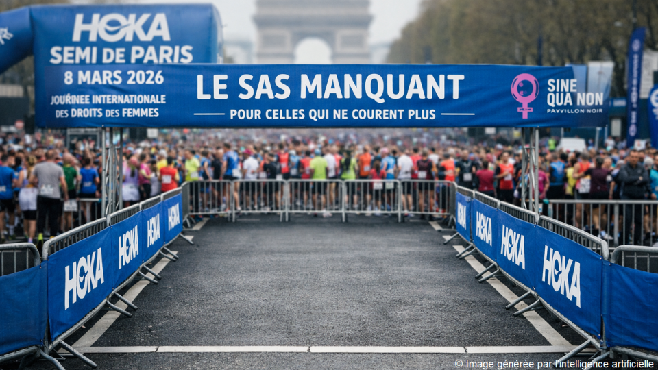 Communication. Sine Qua None profite de la journée internationale des droits des femmes, dimanche 8 mars, pour mettre en place une opération innovante et spectaculaire lors du Hoka Semi de Paris. Afin de sensibiliser le public au harcèlement dans la pratique du sport par les femmes. Baptisée “Le sas manquant”, l’initiative prendra la forme, sur la ligne de départ, d’un espace laissé volontairement vide.