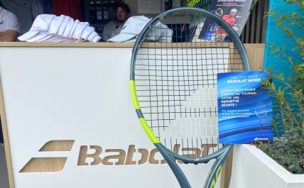 Plusieurs équipementiers affichaient des grosses raquettes devant leur stand. Certaines à vendre, d’autres à "gagner".